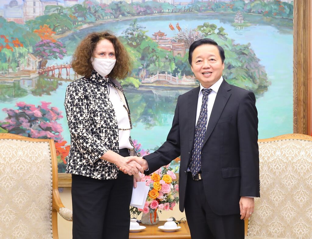 Carolyn Turk a informé son hôte des progrès de la préparation et du développement du cadre de partenariat pays (CPF) du Groupe de la BM pour le Vietnam pour la période 2023-2027, qui comprend un pilier sur l’amélioration de la résilience au changement climatique, en particulier dans le delta du Mékong et d’autres zones géographiques vulnérables ; les investissements verts; et la transition vers une économie à faibles émissions de carbone.