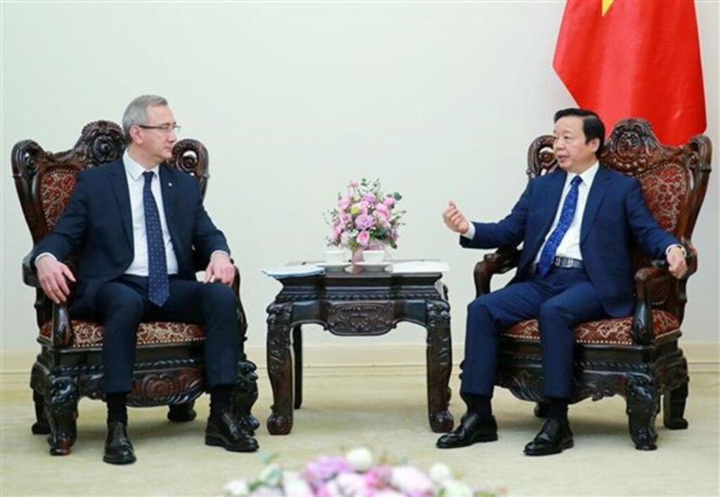| Le vice-Premier ministre Trân Hông Hà (droite) et Vasilav Valerievich Shapsha, gouverneur de l’oblast russe de Kalouga, en visite de travail au Vietnam. |