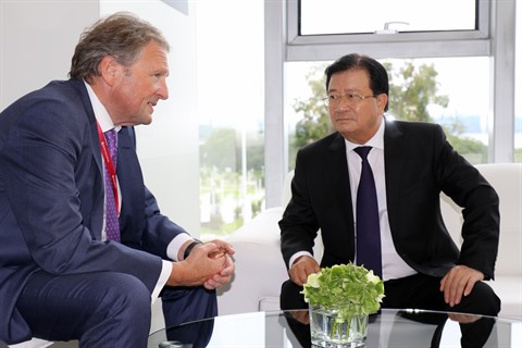 | Le vice-Premier ministre Trinh Dinh Dung (droite) et le commissaire présidentiel pour les droits des entrepreneurs B. Titov. |