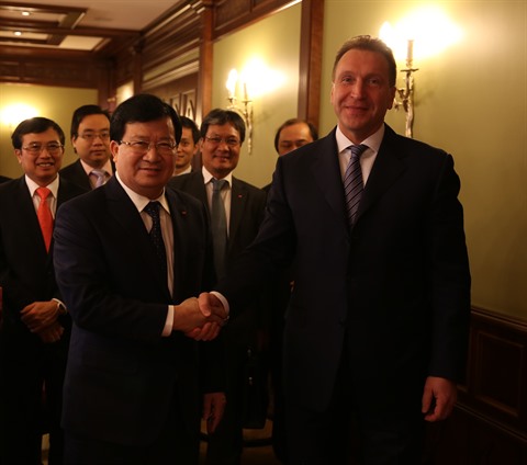 | Le vice-Premier ministre Trinh Dinh Dung (gauche) et le premier vice-Premier ministre russe Igor Shuvalov. |
