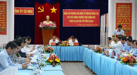 | Le vice-Premier ministre Truong Hoà Binh a travaillé avec les autorités dela province de Ca Mau (Sud), le 13 janvier. |