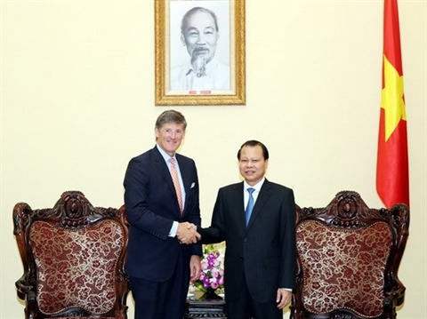 | Le vice- Premier ministre Vu Van Ninh (droite) et le directeur général de Citigroup, Michael L. Corbat, le 23 octobre, à Hanoi. |