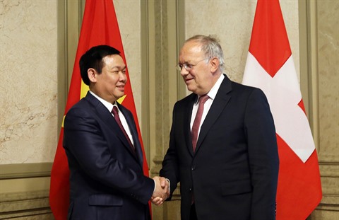 Dans la capitale Berne, le vice-Premier ministre Vuong Dinh Huê a eu des séances de travail avec le conseiller fédéral Johann N. Schneider-Ammann, chef du Département fédéral de l’économie, de la formation et de la recherche ; la présidente de la Commission de l’économie et des redevances du Conseil national, Mme Susanne Leutenegger Oberholzer. Le vice-Premier ministre a également reçu des représentants de grandes compagnies suisses. Il a aussi rencontré les cadres et fonctionnaires de l’ambassade du Vietnam en Suisse.