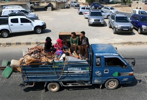 | Des Syriens fuient les bombardements dans la province d'Idleb le 9 septembre. |