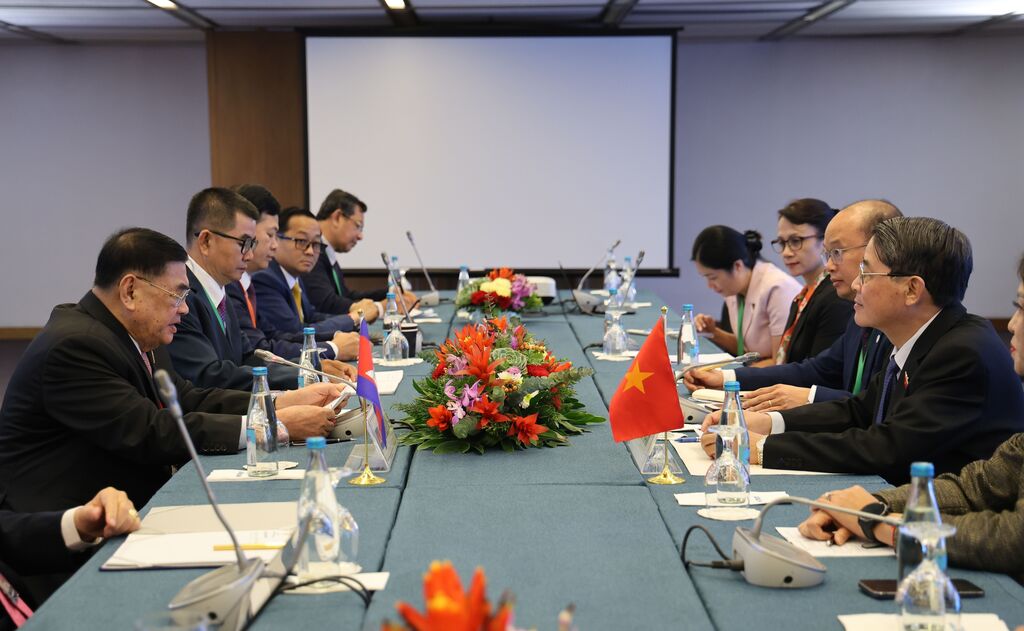 | Lors d'une rencontre de Nguyên Duc Hai avec le premier vice-président de l'Assemblée nationale cambodgienne Cheam Yeap. |