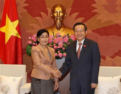 | Le vice-président de l'Assemblée nationale, Phung Quôc Hiên, et la présidente de l’Audit de l'État du Laos, Viengthong Siphandone. |