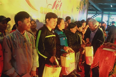 | Le vice-président de l’Assemblée nationale Uông Chu Luu offre, le 12 janvier, des cadeaux aux travailleurs à la province de Thanh Hoa (Centre). |