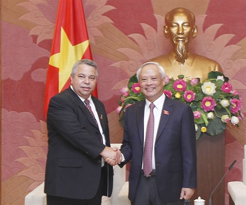 | Le vice-président de l’AN vietnamien Uông Chu Luu (droite) et Ulises Guilarte de Nacimiento, membre du Bureau politique du Parti communiste de Cuba. |
