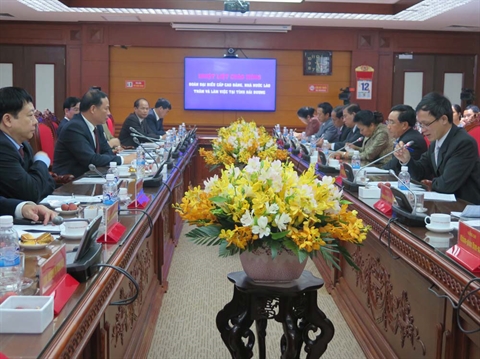 | Séance de travail entre le vice-président du Laos, Phankham Viphavanh, et les autorités de la province septentrionale de Hai Duong, le 12 juillet. |