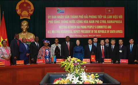 | Une rencontre entre la délégation de l’Afrique du Sud et celle de Hai Phong, le 4 octobre, dans la ville portuaire du même nom au Nord. |