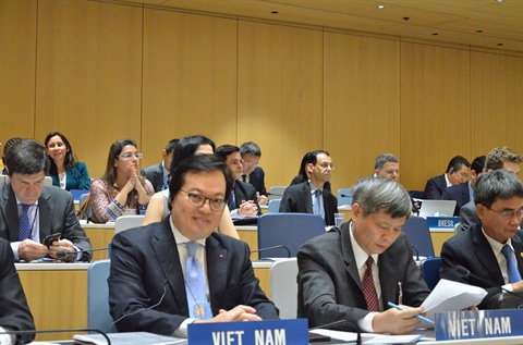 | L’ambassadeur vietnamien Duong Chi Dung (1er à gauche), lors de la 49e session de l'Assemblée générale de l'OMPI, le 2 octobre à Genève, en Suisse. |