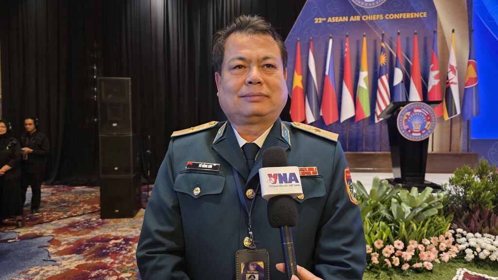 | Le général de brigade Vu Hông Son, commandant de l’Armée de l’air et de la défense anti-aérienne du Vietnam, à la 22e Conférence des commandants de l’armée de l’air de l’ASEAN. |
