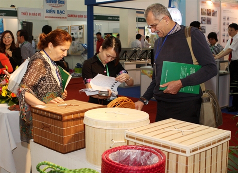 | Lors des foires internationales, les produits artisanaux du Vietnam attirent toujours les visiteurs. |