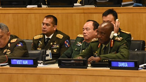 | Le général de corps d'armée Pham Ngoc Minh (2e, droite) à la Conférence des commandants en chef des forces de défense sur les opérations de maintien de la paix de l'ONU, tenue les 6 et 7 juillet à New York, aux États-Unis. |