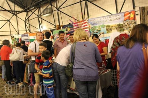 | Le stand du Vietnam attire de nombreux visiteurs lors de la Foire «Gran Bazar-Kermesse Beneficico 2015». |