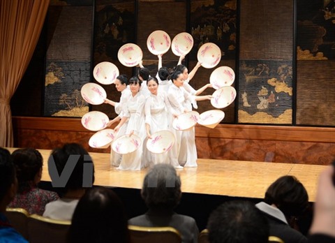 | Un numéro artistique du Vietnam à la foire caritative de l’Association des femmes de l’Asie-Pacifique, le 19 avril à Tokyo. |