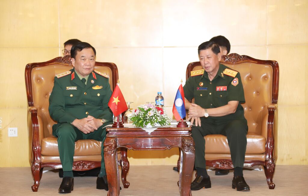 | Le vice-ministre Hoàng Xuân Chiên (gauche) et le vice-ministre lao de la Défense, Vongkham Phommakon, le 25 septembre à Vientiane. |