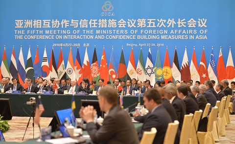 | La 5e réunion des ministres des AE de la Conférence sur l'interaction et les mesures d'instauration de la confiance en Asie, le 28 avril à Pékin. |