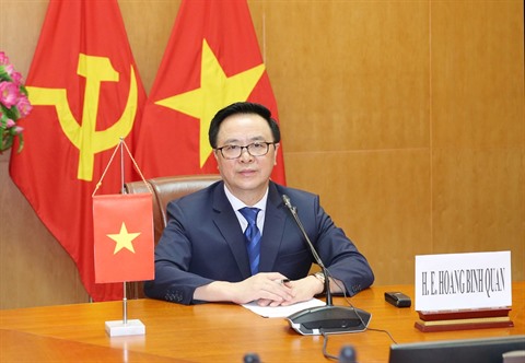 S'adressant à l'événement, qui se concentre sur la coopération en matière de sécurité dans le contetxe de la pandémie de COVID-19, Hoang Binh Quan a partagé le succès initial et l'expérience du Vietnam dans la lutte contre la pandémie et a souligné la direction du Parti communiste du Vietnam, les actions drastiques du gouvernement et la confiance et le consensus des habitants. Il a suggéré d'améliorer la coordination des politiques, le partage opportun et régulier d'informations et d'expériences, en garantissant l'accès des citoyens des zones touchées par une pandémie à l'information, au traitement et à l'aide humanitaire.