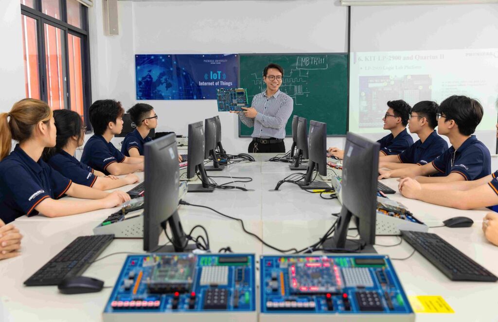 Le laboratoire moderne du Centre de formation en conception de circuits intégrés de l'université Phenikaa (Phenikaa Semiconductor Training Center - PSTC) accueille des étudiants passionnés qui travaillent sur des écrans remplis de codes et de schémas de circuits. Ces étudiants font partie de la première promotion du programme de formation avancée en conception de circuits intégrés à semi-conducteurs.