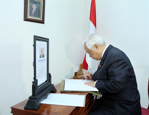 | Le vice-président de l'AN, Uông Chu Luu, a consigné un registre de deuil rendant hommage à l'ancien président du Conseil consultatif populaire d'Indonésie, le 12 juin à l'ambassade d'Indonésie au Vietnam |