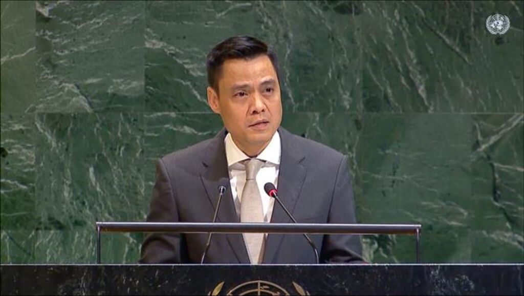 | L’ambassadeur Dang Hoàng Giang, chef de la Mission permanente du Vietnam auprès de l’ONU prenant la parole lors de l'événement. |