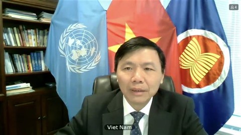 | L'ambassadeur Dang Dinh Quy lors d'une réunion en ligne sur l'Irak du Conseil de sécurité des Nations unies, le 11 mai. |