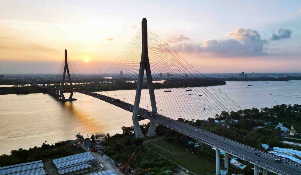 | Le pont de Cân Tho, qui est le pont à haubans le plus long d’Asie du Sud-Est (longueur de la travée principale : 550 m), construit avec l'APD du gouvernement japonais et des capitaux de contrepartie du gouvernement vietnamien |
