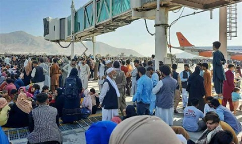 | Des foules cherchant à fuir alors que les Talibans déclarent le contrôle de l'Afghanistan. |