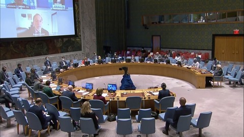 | Vue générale de la réunion sur la situation au Moyen-Orient au Conseil de sécurité de l’ONU. |