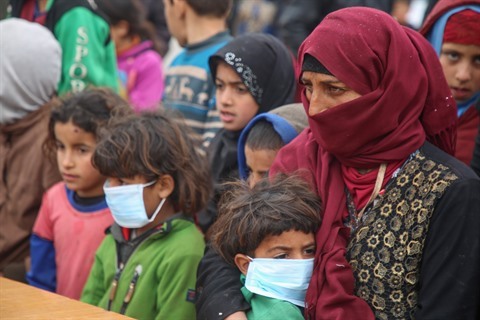| Réfugiés portant des masques en Syrie, le 18 mars. |