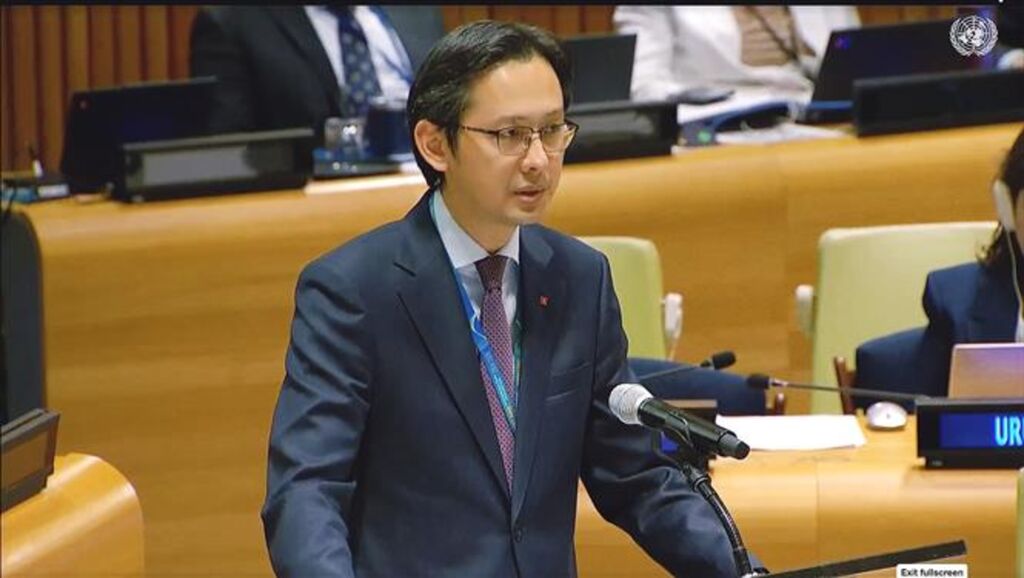 | L'ambassadeur Dô Hùng Viêt, chef de la Mission permanente du Vietnam auprès des Nations unies, prend la parole à l'événement à New York. |