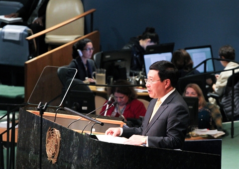 | Le vice-Premier ministre et ministre des AE, Pham Binh Minh à la 71e session de l’Assemblée générale de l’ONU. |