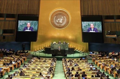 | Le Premier ministre Nguyên Xuân Phuc s'exprime lors d'une discussion à haut niveau de la 73e Assemblée générale de l'ONU, en 2018 à New York |