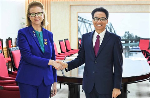 | Le vice-Premier ministre Vu Duc Dam et la représentante résidente du Programme des Nations unies pour le développement au Vietnam, Caitlin Wiesen |