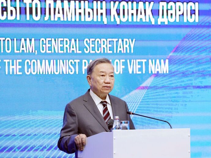 | Entrevue entre le chef du PCV, Tô Lâm et le Premier ministre Oljas Bektenov. |