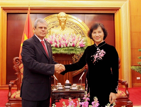 | La vice-présidente de l'Assemblée nationale vietnamienne, Nguyên Thi Kim Ngân, et le secrétaire du Conseil d'État cubain, |