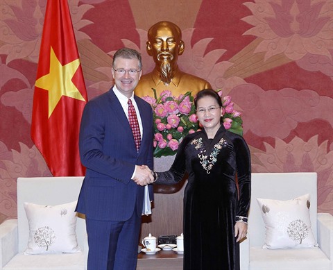 | La présidente de l'AN du Vietnam Nguyên Thi Kim Ngân et le nouvel ambassadeur américain au Vietnam, Daniel Kritenbrink. |