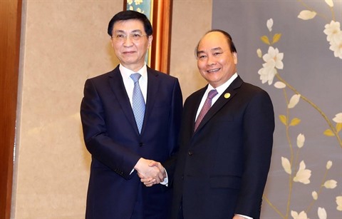 Lors d’une rencontre avec Wang Huning, membre de la permanence du Bureau politique et du Secrétariat du Parti communiste chinois (PCC) à Pékin, jeudi 25 avril, le Premier ministre Nguyên Xuân Phuc a exprimé sa satisfaction devant l'évolution positive des relations entre le Parti communiste du Vietnam (PCV) et le PCC, ainsi qu’entre les deux pays au cours des dernières années.