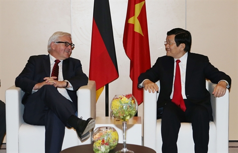 Toujours dans l'après-midi du 25 novembre, lors de sa rencontre avec le ministre allemand des Affaires étrangères Frank-Walter Steinmeier, le président Truong Tân Sang a salué le développement positif du partenariat stratégique entre les deux pays. Il a affirmé que le Vietnam considérait toujours l'Allemagne comme un partenaire de première importance et souhaité l'amitié et la coopération entre les deux pays s’approfondir.