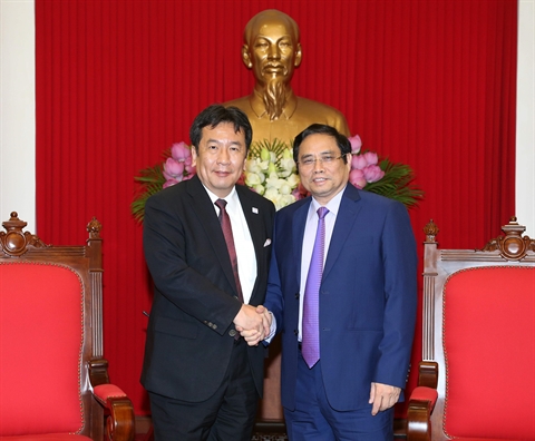 | Pham Minh Chinh (droite) et Edano Yukio, le 29 mai à Hanoï. |