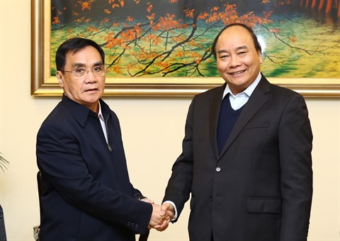 | Le Premier ministre Nguyên Xuân Phuc (droite) et l’ancien Premier-ministre lao Thoongsinh Thammavong. |