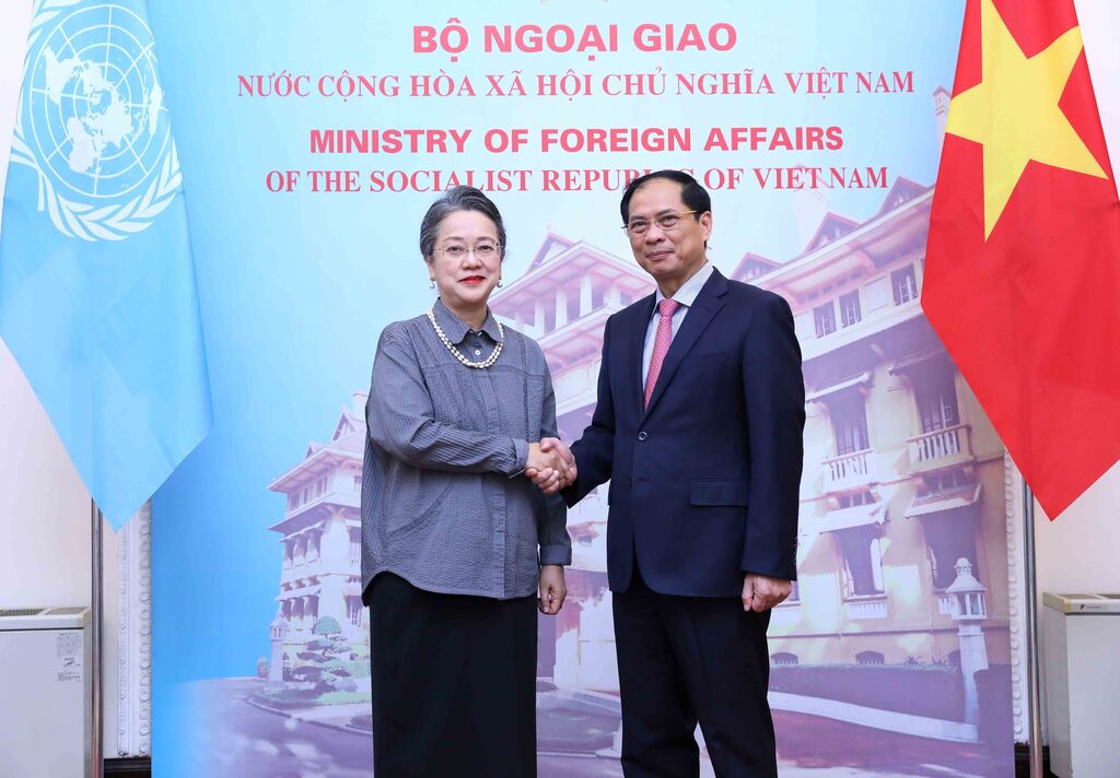 | Entretien entre le ministre des Affaires étrangères, Bùi Thanh Son, et la secrétaire générale adjointe de l’ONU, Armida Salsiah Alisjahbana. |