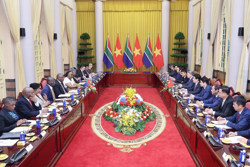 Luong Cuong s’est réjoui d’accueillir à nouveau le président Matamela Cyril Ramaphosa au Vietnam. Il l’a félicité pour les importantes réalisations de l’Afrique du Sud sous la direction du gouvernement d’unité nationale, et a exprimé sa conviction que le pays assumerait avec succès la présidence du G20 en 2025, qu’il organisera avec brio le premier Sommet du G20 en Afrique, et qu’il continuerait d’être une économie majeure du continent, jouant un rôle de premier plan sur la scène internationale.