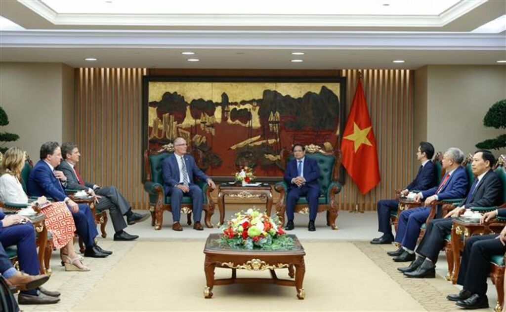 | Le Premier ministre Pham Minh Chinh (droite) et John Moolenaar, député de l’État du Michigan et membre de la Commission des crédits de la Chambre des représentants. |