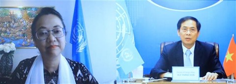 Le ministre vietnamien des Affaires étrangères Bùi Thanh Son a effectué vendredi 13 août un entretien virtuel avec la secrétaire générale adjointe de l’ONU et secrétaire exécutive de la CESAP, Armida Salsiah Alisjahbana.