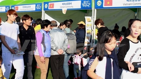 | Les stands du Vietnam au Festival Global Gathering à Pusan. |
