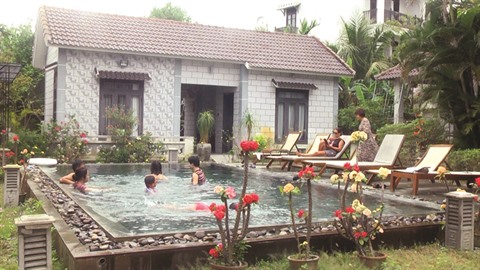 | Touristes séjournant dans la villa Mr Tho Garden à Quang Nam (Centre). |
