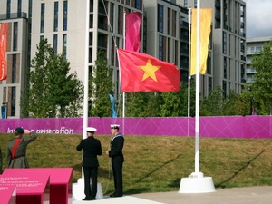 | Cérémonie de lever du drapeau du Vietnam, le 26 août au parc olympique à Londres. Photo : CTV/CVN |
