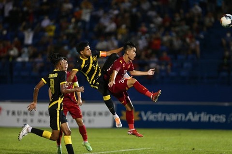 | Lors du match entre le Vietnam (maillot rouge) contre la Malaisie s'inscrivant dans le cadre de la Coupe des U19 du journal "Thanh Niên", le 7 août. |